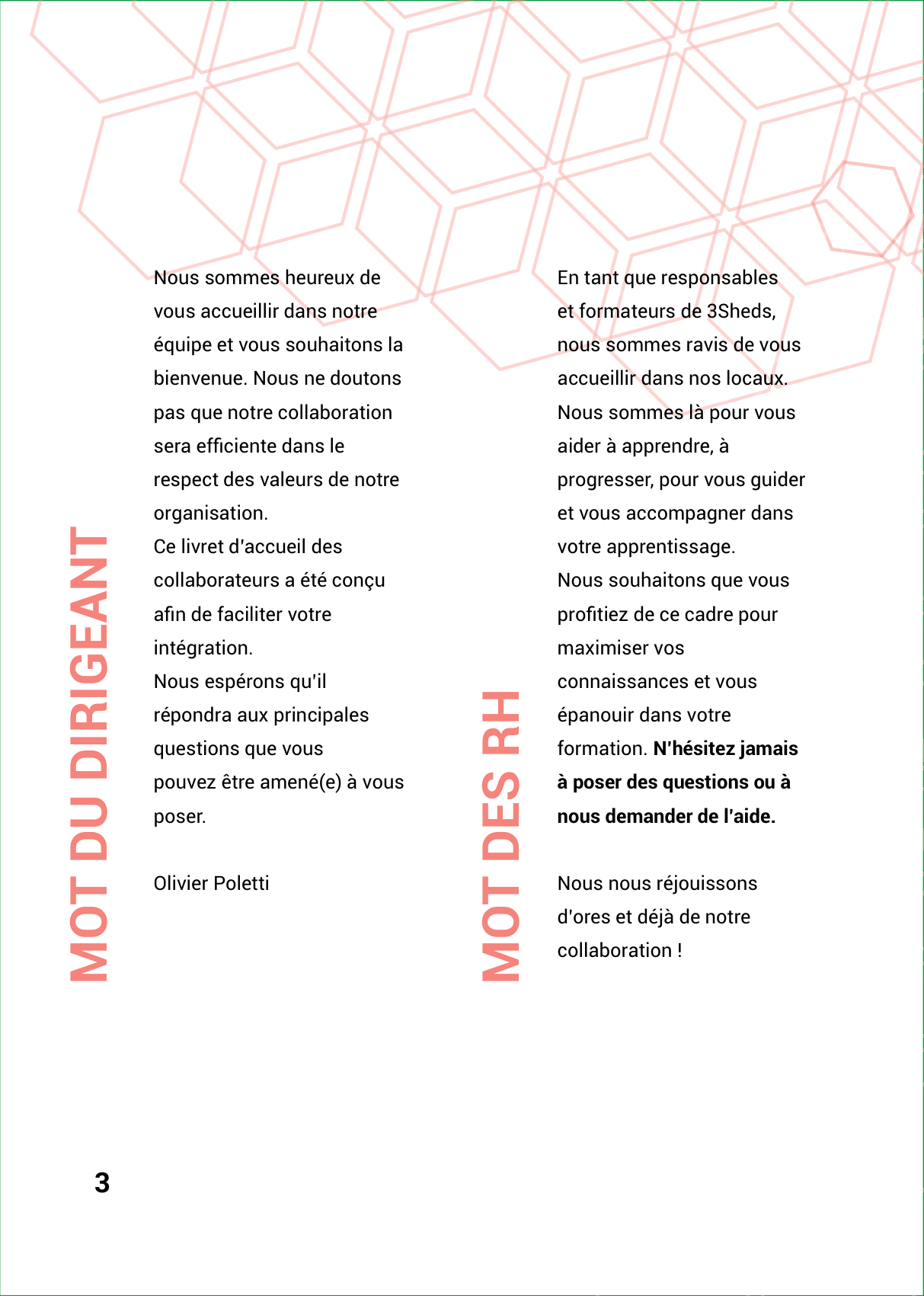 Dans le cadre de l’évolution de notre communication interne, nous avons conçu le Livret d’Accueil 2023. Ce document de référence a été pensé pour guider nos visiteurs, partenaires et collaborateurs à travers l’univers de 3Sheds.