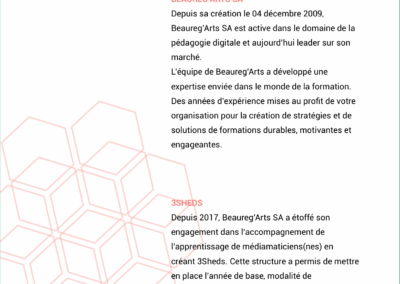 3Sheds est l’espace de formation pratique dédié aux apprentis médiamaticiens. Fonctionnant sur le modèle d’une agence de communication intégrée, cette structure permet de développer des compétences pluridisciplinaires du design graphique à la gestion de projet en passant par le web en répondant à des besoins concrets et professionnels.